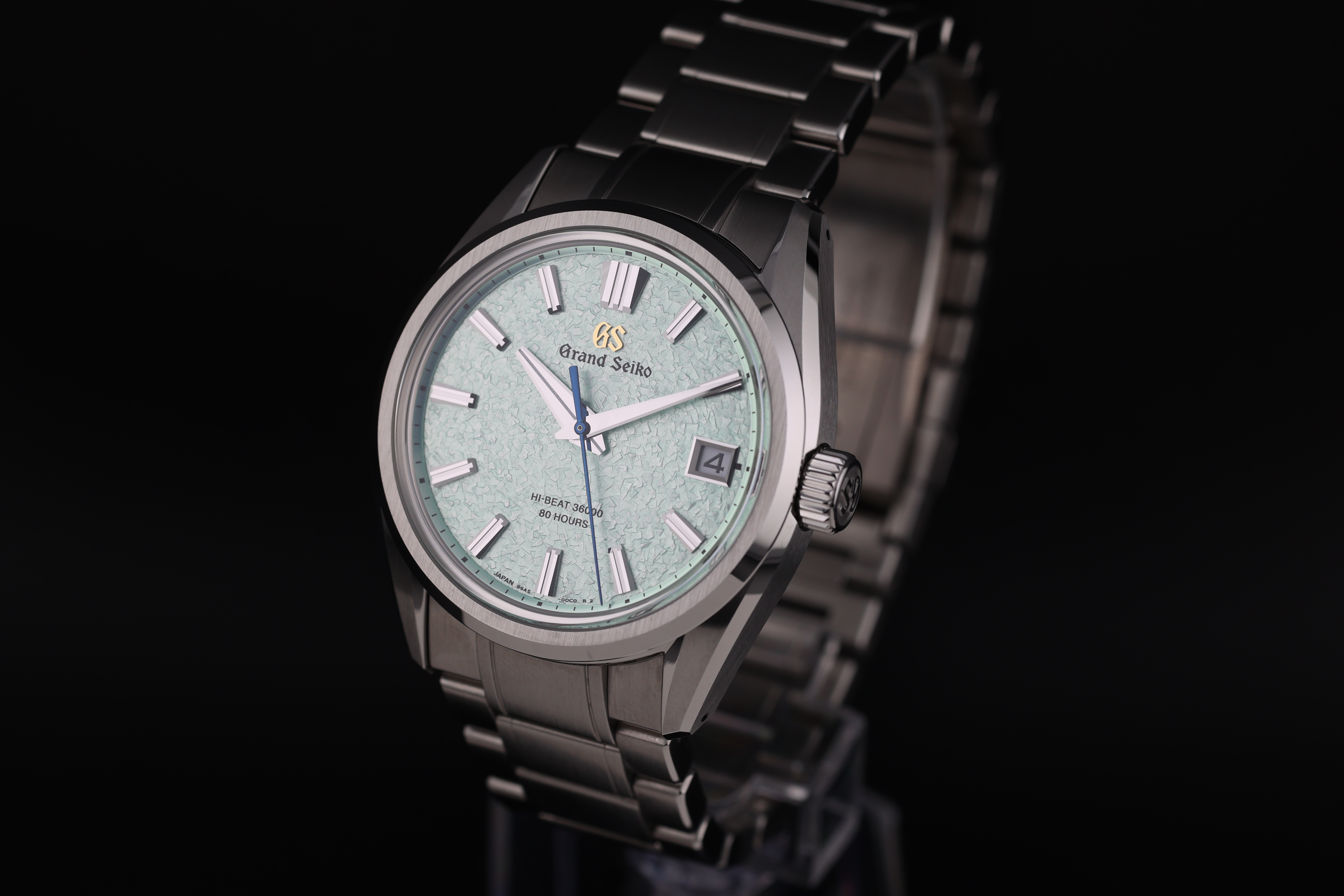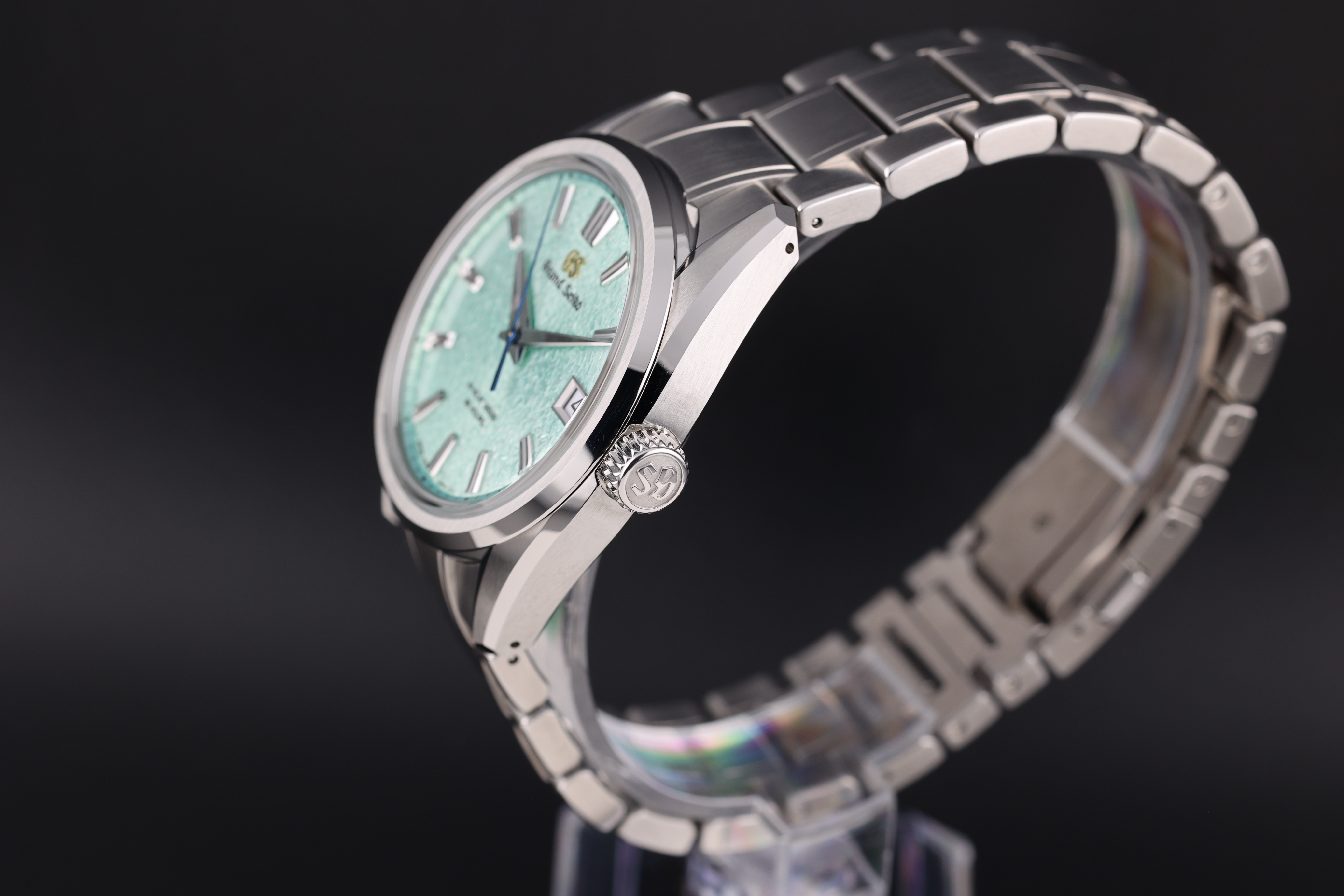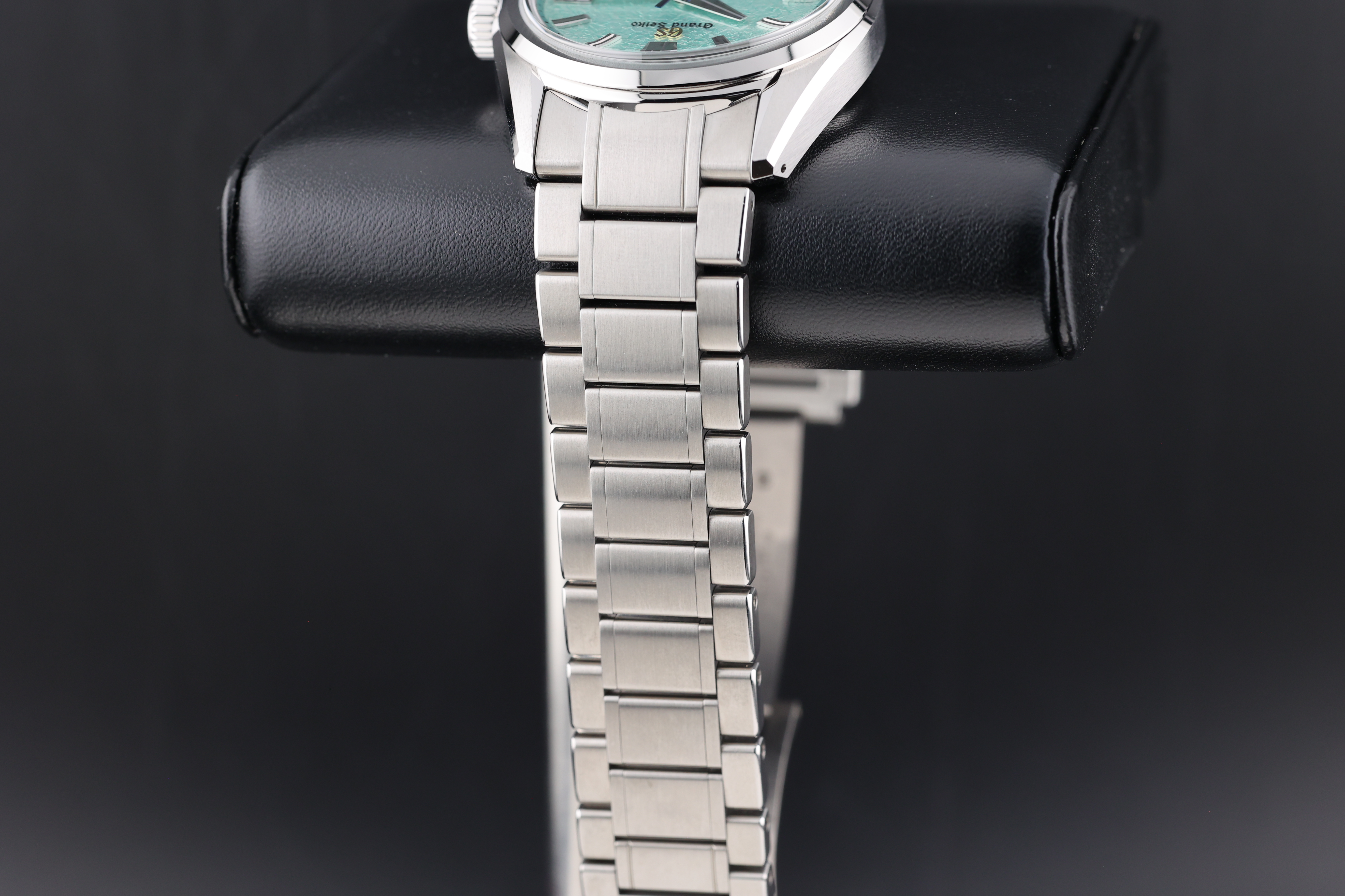 Up for sale is an absolute stunner of a watch from Grand Seiko, the SLGH021 (aka Genbi Valley). Limited to 1000 pieces, this watch stands out from the rest with its gorgeous dial. Situated along the Iwai River in Iwate Prefecture, the Genbi Valley is a nationally recognized scenic treasure and natural wonder of Japan. This area is home to Grand Seiko's mechanical watchmaking studio, and its serene beauty serves as the inspiration for this watch’s design. The dial captures the valley’s essence with a distinctive textured pattern along with a light-green hue. The case is makde from Ever-Brilliant Steel, a material known for its superior corrosion resistance and bright white luster. As the first Evolution 9 Collection model to feature this advanced steel, it pairs beautifully with the vivid dial. Inside, the watch is powered by the Caliber 9SA5, a high-beat movement having an impressive 80-hour power reserve.