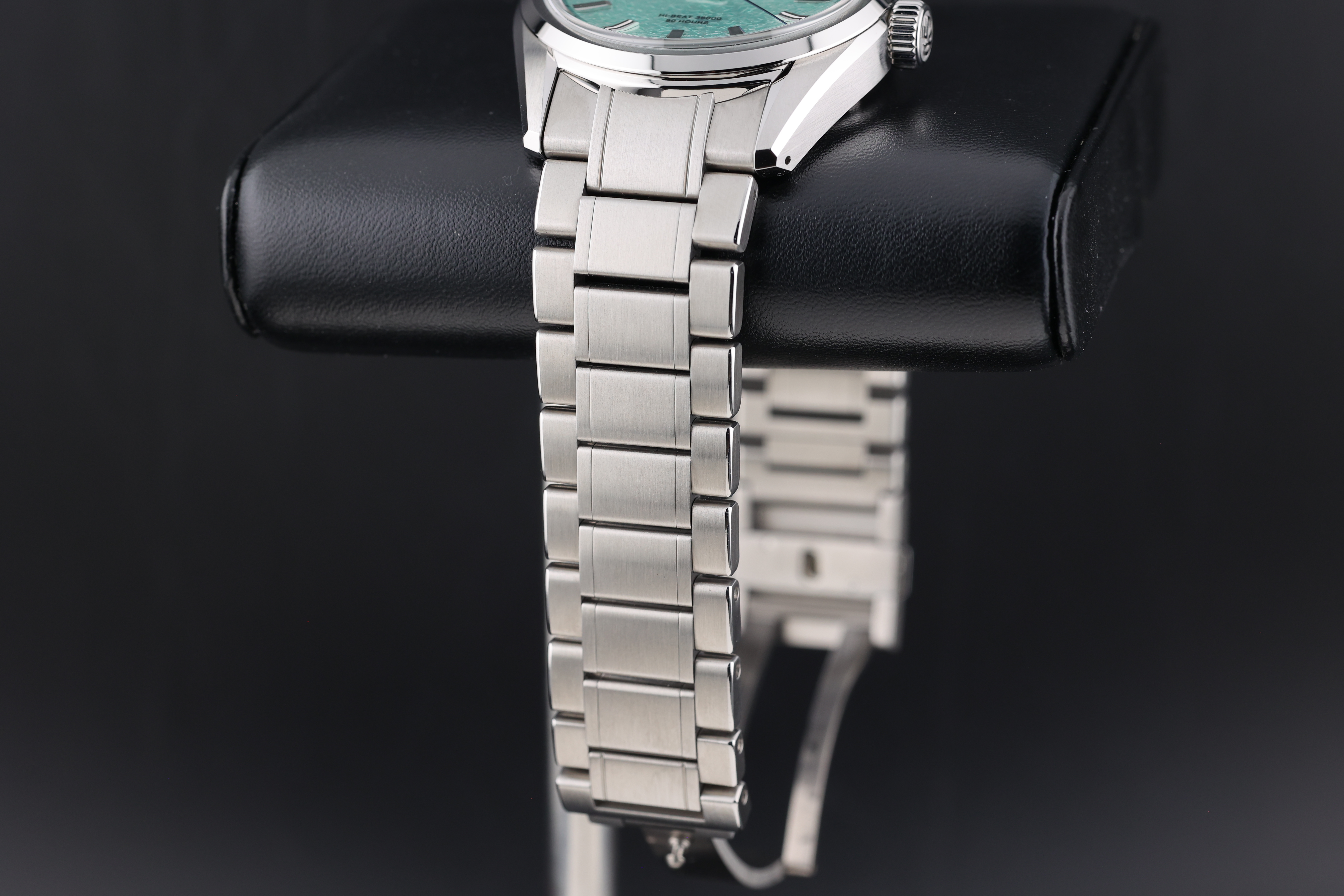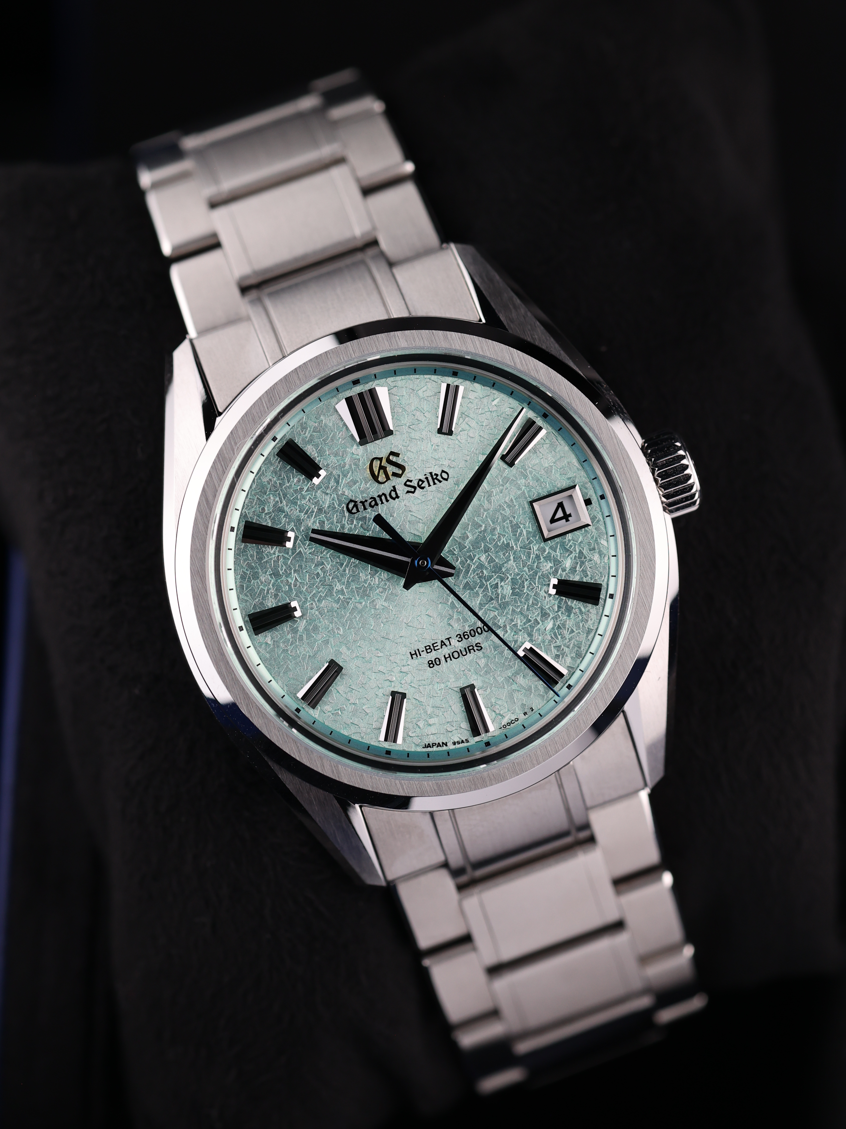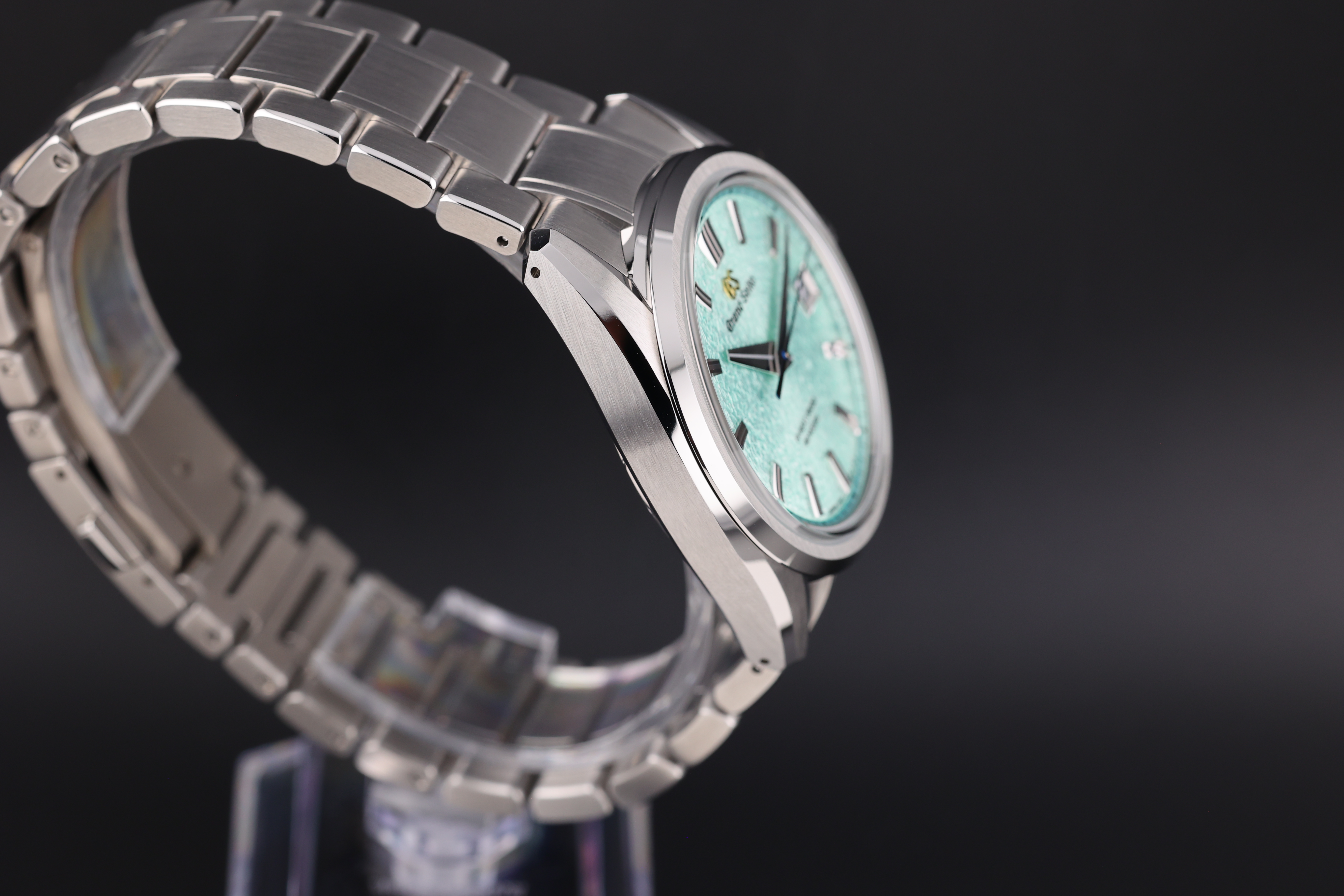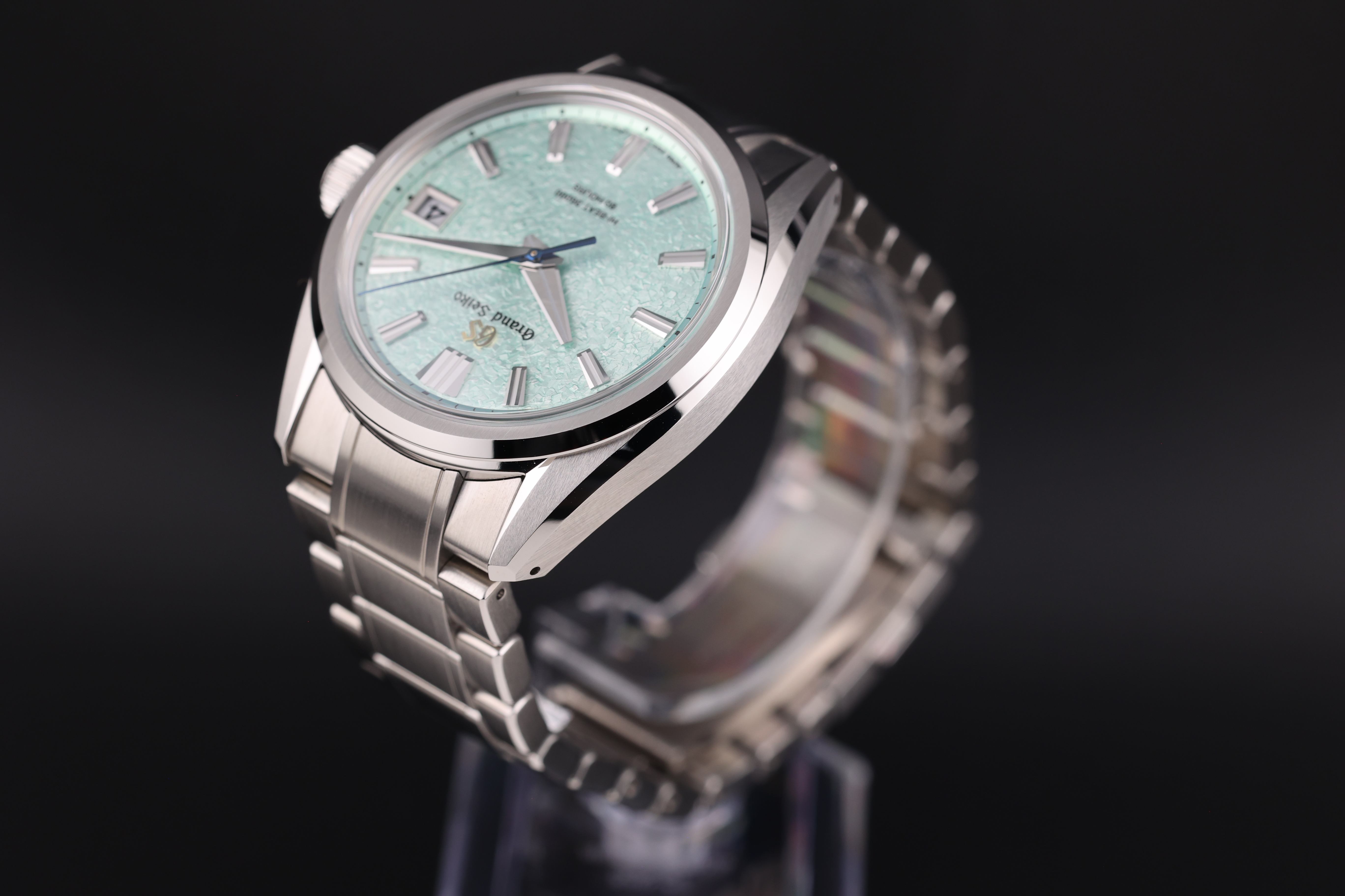 Up for sale is an absolute stunner of a watch from Grand Seiko, the SLGH021 (aka Genbi Valley). Limited to 1000 pieces, this watch stands out from the rest with its gorgeous dial. Situated along the Iwai River in Iwate Prefecture, the Genbi Valley is a nationally recognized scenic treasure and natural wonder of Japan. This area is home to Grand Seiko's mechanical watchmaking studio, and its serene beauty serves as the inspiration for this watch’s design. The dial captures the valley’s essence with a distinctive textured pattern along with a light-green hue. The case is makde from Ever-Brilliant Steel, a material known for its superior corrosion resistance and bright white luster. As the first Evolution 9 Collection model to feature this advanced steel, it pairs beautifully with the vivid dial. Inside, the watch is powered by the Caliber 9SA5, a high-beat movement having an impressive 80-hour power reserve.
